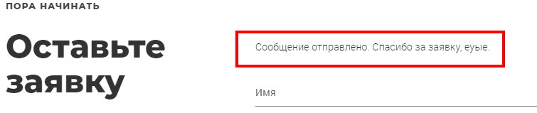 Шаг 3: При успешной отправке обычно приходит сообщение благодарности. То, что нам нужно.