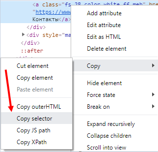 3. Скопируйте селектор.