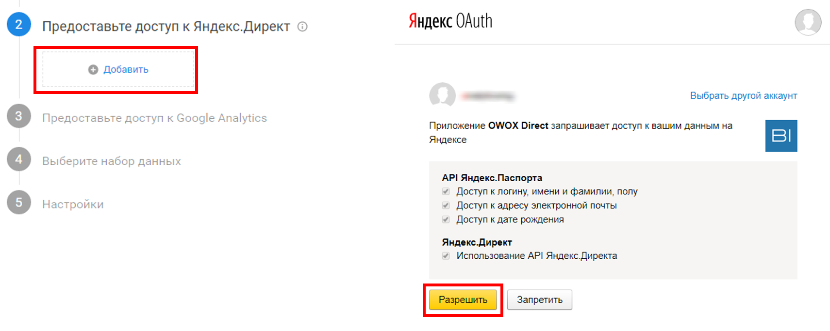3. Предоставляем доступ OWOX к данным Яндекс.Директ.