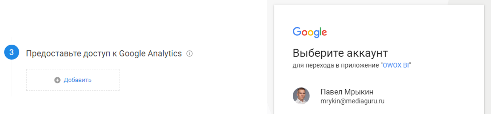 4. Открываем OWOX доступ для передачи данных в Google Analytics. Чтобы OWOX смог уже полученные данные передать дальше.