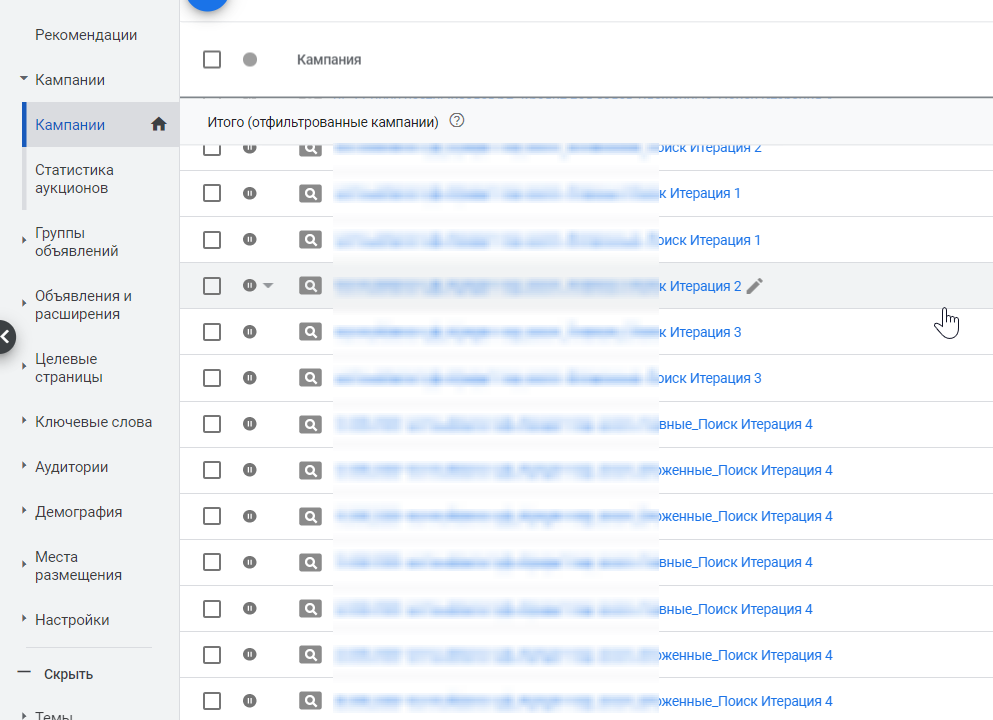 Именно поэтому мы решили как можно чаще входить в аукцион разными кампаниями (итерациями) с идентичными настройками, но разными креативами. Мы предполагали, что такое чередование будет получать некий приоритет, так как Google вынужден постоянно тестировать новые кампании и креативы.