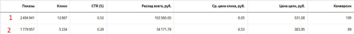 Периодически мы проводили «укрупнение РК» по направлениям, которые давали стабильный результат. Это важно для набора большего количества данных в рамках одной кампании.