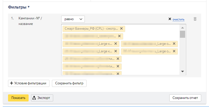 Кстати, отслеживать это было удобно. Мы просто сохраняли ссылку в закладках на Мастере отчетов с группировкой по неделям, а РК фильтровали по названиям. Предварительно во все названия добавили метку CPL, которая означала оплату за лид.