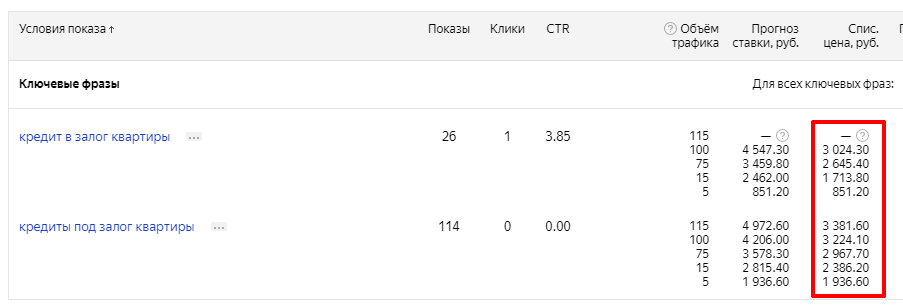 По моим наблюдениям, чем меньше трафика в нише и чем сильнее разогрет аукцион, тем меньше шансов получить даже минимальный результат. Например, если стоимость трафика вот такая: