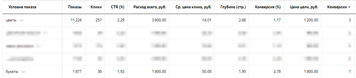 Доставка цветов, здесь свежая РК, в которой пока мало данных