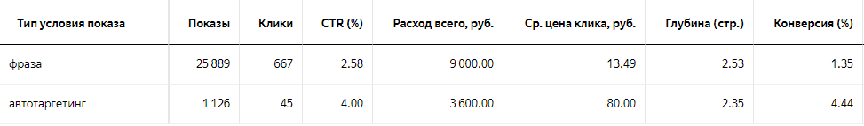 В предыдущем примере мы выставили цену за конверсию в 4-5 раз выше целевой. Было страшно, но рекламная кампания не давала трафик при меньшей цене. За РК приходилось следить каждый час, но чуда не произошло. Если аукцион перегрет и вы конкурируете с гигантскими бюджетами (например, в нише регистрации ООО уже давно крутят рекламу банки с высокими расходам на рекламу), то Яндексу банально выгоднее продавать такой трафик сразу по модели CPC, а не «дарить» его по оплате за лид, которого может и не быть.