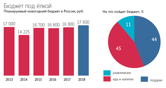 По версии Deloitte в России с каждым годом люди готовы тратиться на праздники, а значит бюджет, оставленный «под ёлкой» растет.