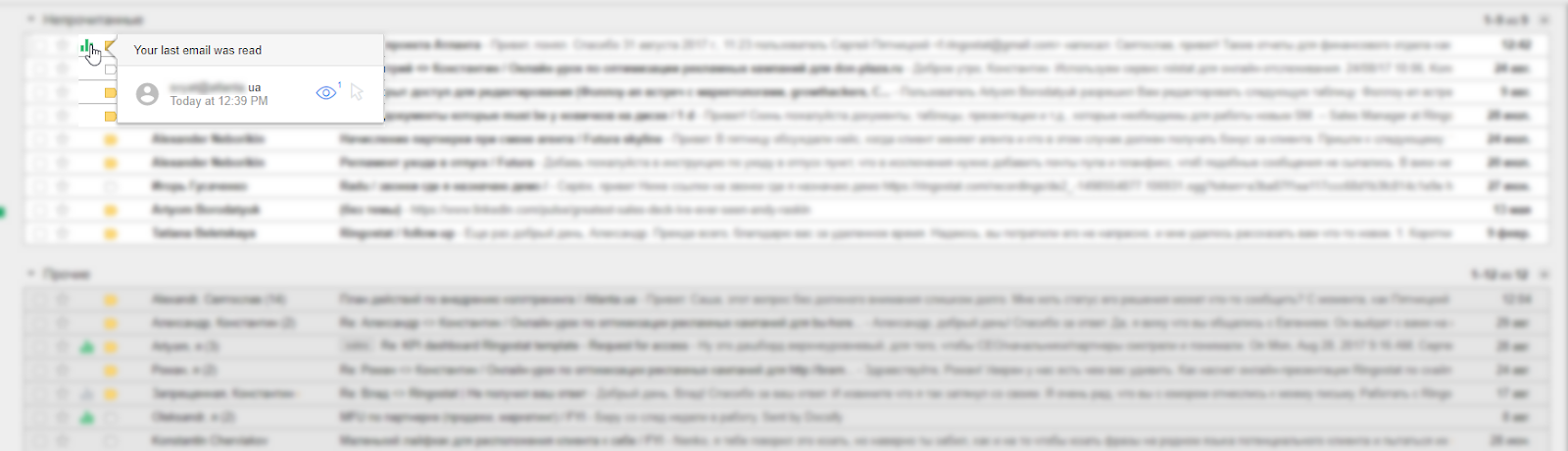 1. Отслеживание открытий писем. Менеджер сразу понимает, прочитал клиент письмо, или нет.