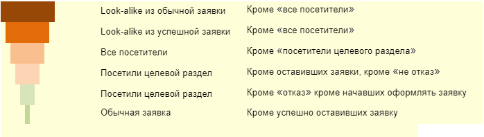 Сегментировать ретаргетинг было решено таким образом: