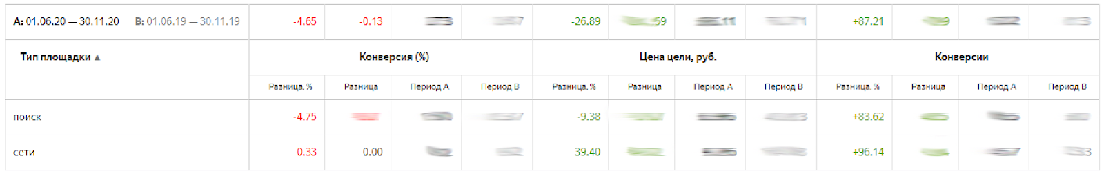 В целом мы получили +26% конверсий и +8% к стоимости конверсии.