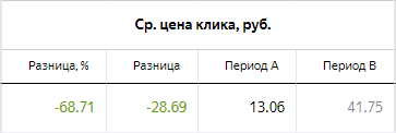 2) Средняя цена клика снизилась с 41 руб. до 13 руб.: