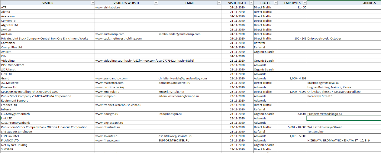 Проанализировали, какие компании после посещения сайта совершили продажи, а какие — нет. Пример выгрузки результатов Fast Base ниже