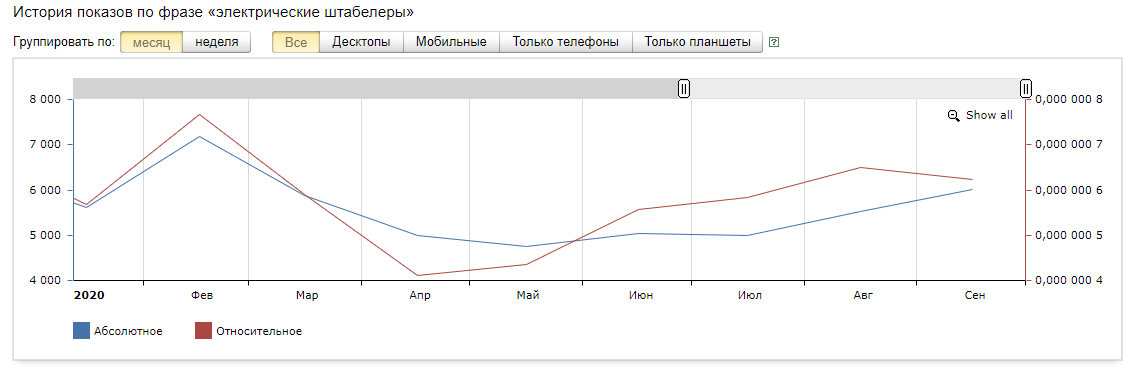 Статистика Яндекса доказывает, что аудитория, которым интересна подъемно-погрузочная техника клиента, находится на Яндекс Дзене и Яндекс Картах. В ближайшее время обязательно протестируем эти площадки.