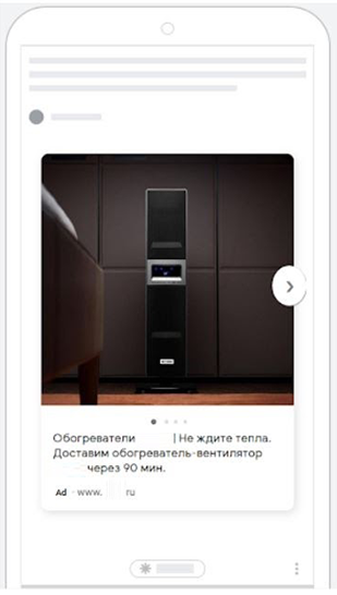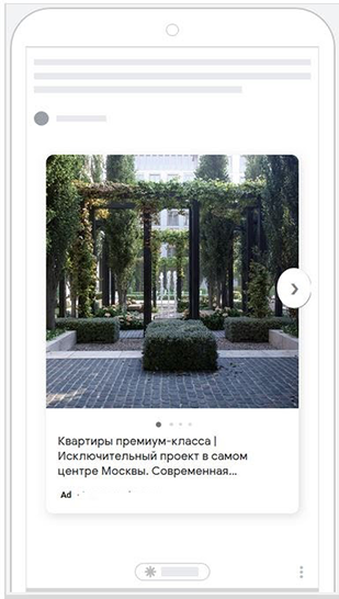 - Объявление-карусель — галерея из 2-10 квадратных изображений, под каждым из которых заголовок и описание: