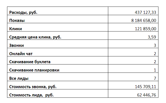 В результате мы получили много трафика и небольшое количество целевых заявок и звонков, стоимость которых оказалась на порядок выше в сравнении с другими кампаниями клиента.