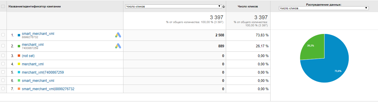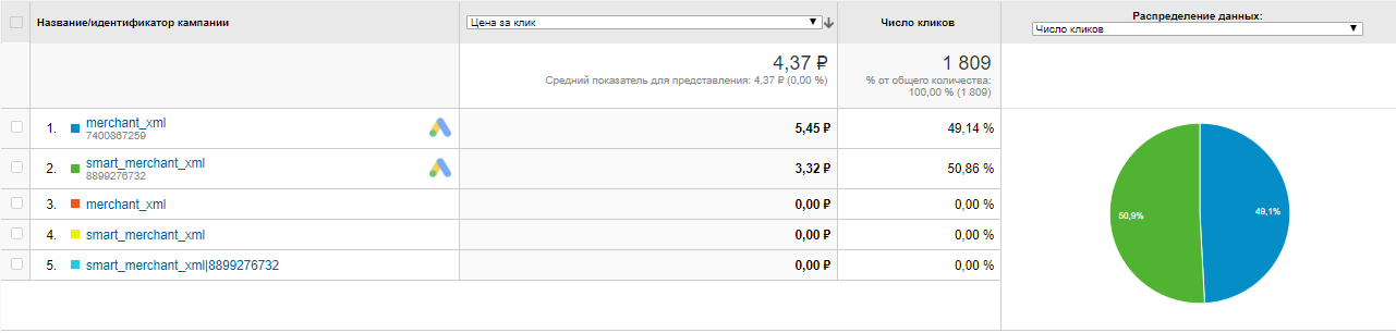 Так как умные кампании используют машинное обучение, мы выждали две недели, пока алгоритмы обучатся. После этого мы отключили обычные, чтобы избежать внутренней конкуренции.