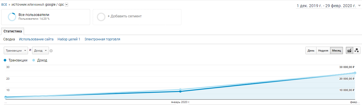 После запуска и месяца работы обычной торговой кампании с оптимальным бюджетом, по итогу декабря мы получили такие результаты: