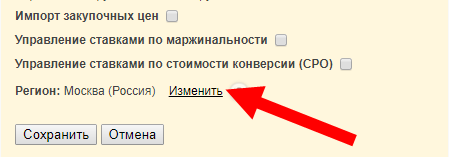 Указанный регион будет использован для получения рекомендованных ставок и информации о конкурентах на Маркете.