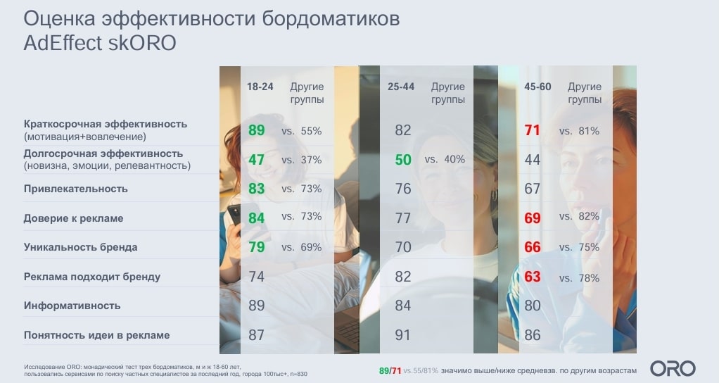 - 89% людей 18-24 лет оценили ролик со сверстниками как «краткосрочно эффективный»;