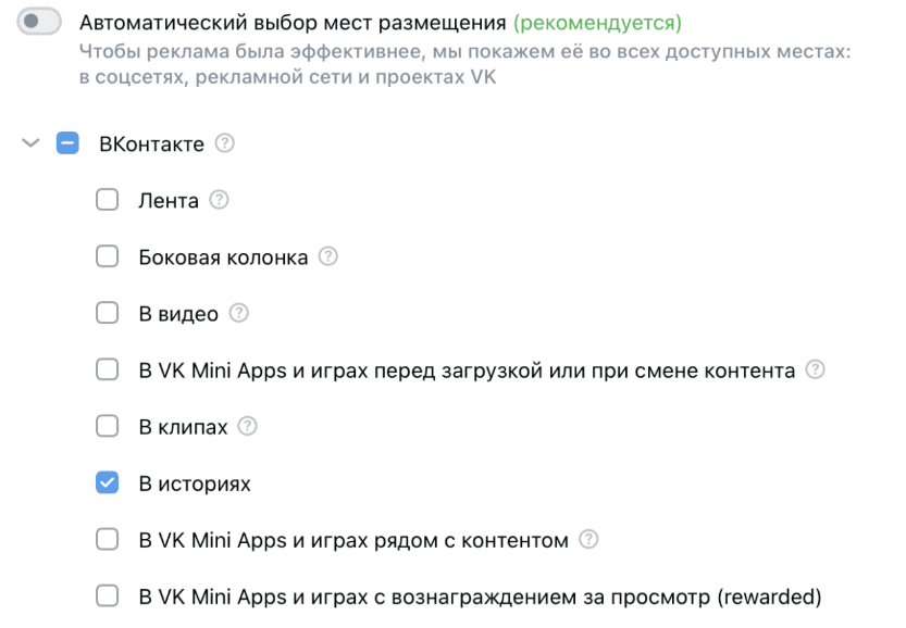 VK Реклама запустила новый формат размещения в историях с изображениями и видео до 30 секунд. Формат доступен для медийных и performance-кампаний, позволяет расширить охват и увеличить эффективность продвижения. Настройка доступна через блок «Места размещения» при создании кампании.
