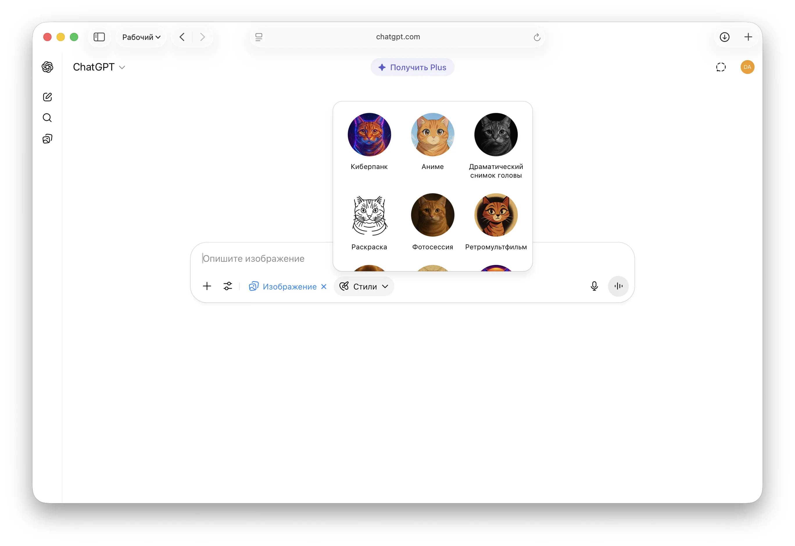 2) В ChatGPT появилась функция «Стили» для генерации изображений.