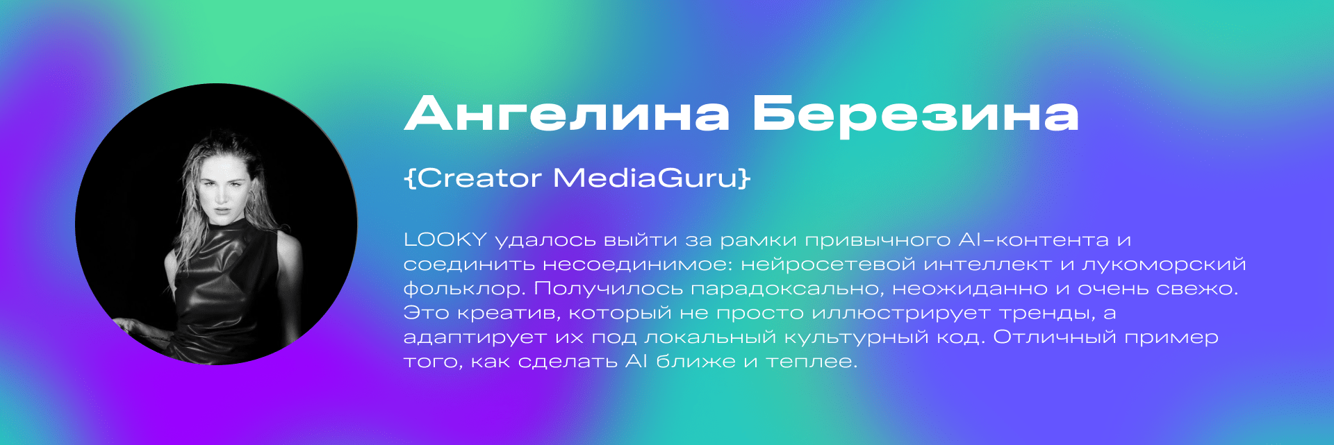 LOOKY удалось выйти за рамки привычного AI-контента и соединить несоединимое: нейросетевой интеллект и лукоморский фольклор. Так, вместо очередного хай-тек ролика — настоящее приключение персонажа Люси в лукоморскую вселенную без интернета и технологий. Получилось парадоксально, неожиданно и очень свежо.