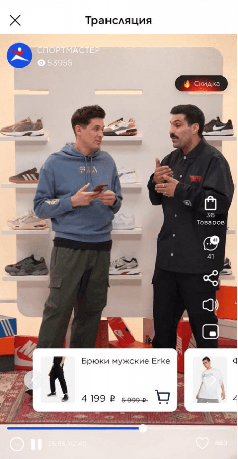 Вдохновившись успехом Китая, «Спортмастер» активно развивает live-commerce — формат онлайн-стримов с прямыми продажами. Эфиры с экспертами, инфлюенсерами и розыгрышами собирают до 300 тыс. просмотров, а ROMI превышает 400%.