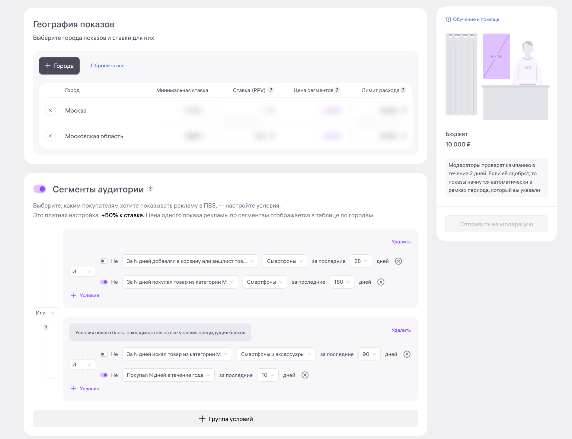 Посетители пунктов выдачи Wildberries теперь будут видеть персонализированную рекламу. RWB Media тестирует аудиторный таргетинг на основе интересов и поведения пользователей — от просмотров до добавлений в корзину. Продавцы могут настраивать период интереса и исключать тех, кто уже совершил покупку.