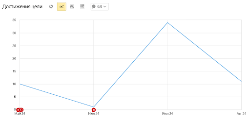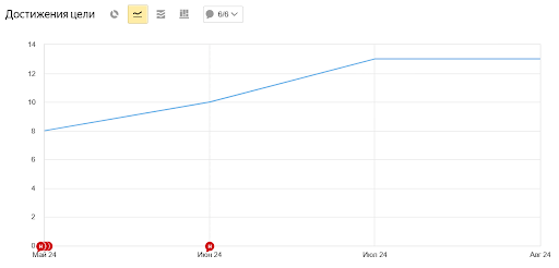 Работу начали с фиксации в системе аналитики отправки каждого обращения, звонка, добавления товара в корзину и, конечно, покупок. Некоторые цели состоят из нескольких этапов и фиксируют каждый шаг потенциального покупателя с первого касания.