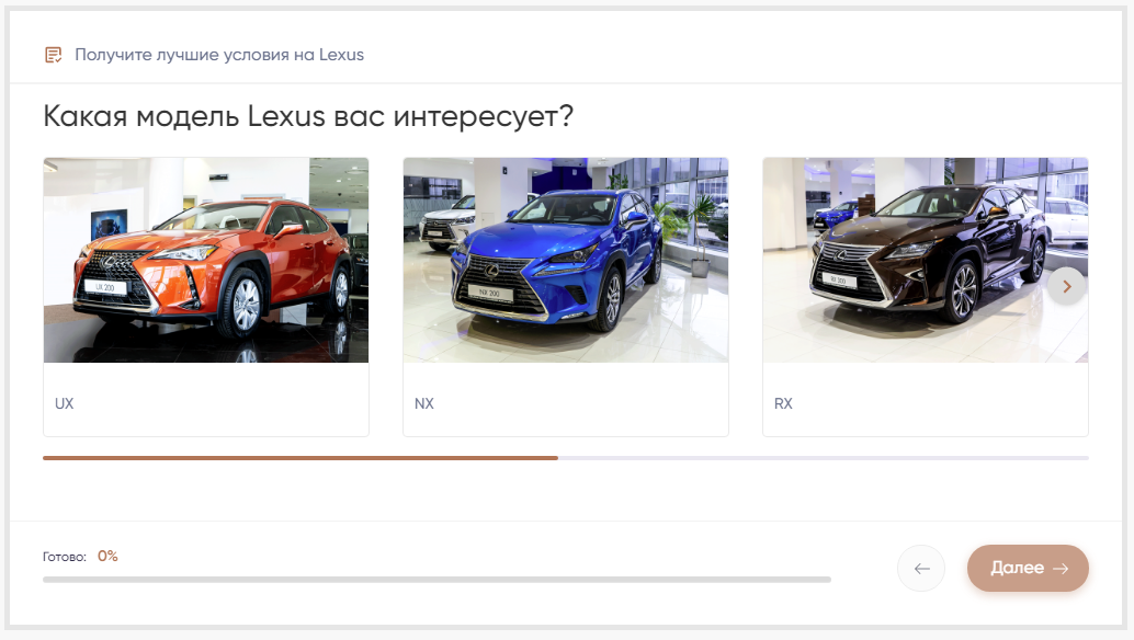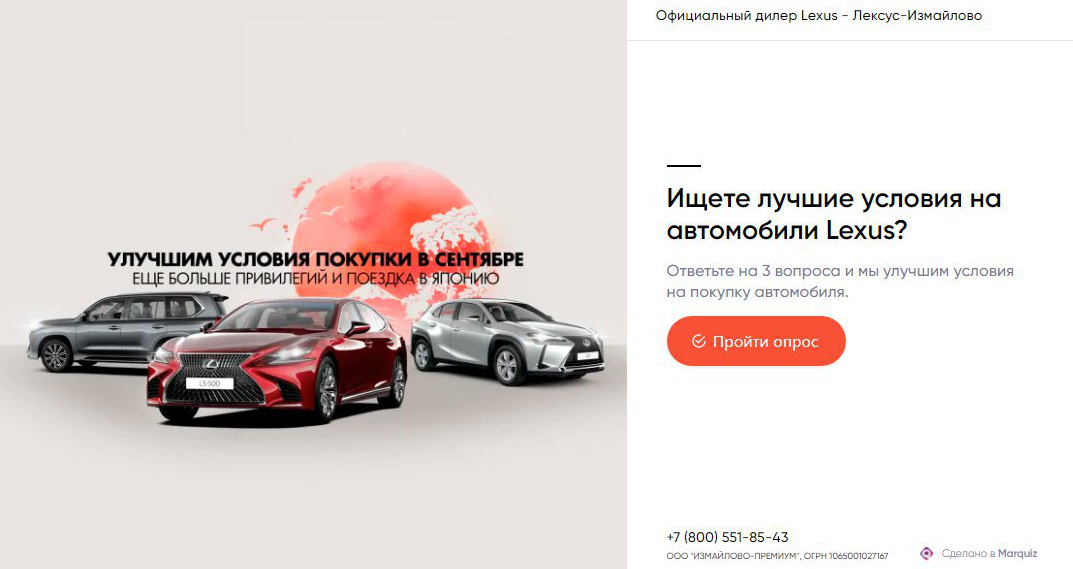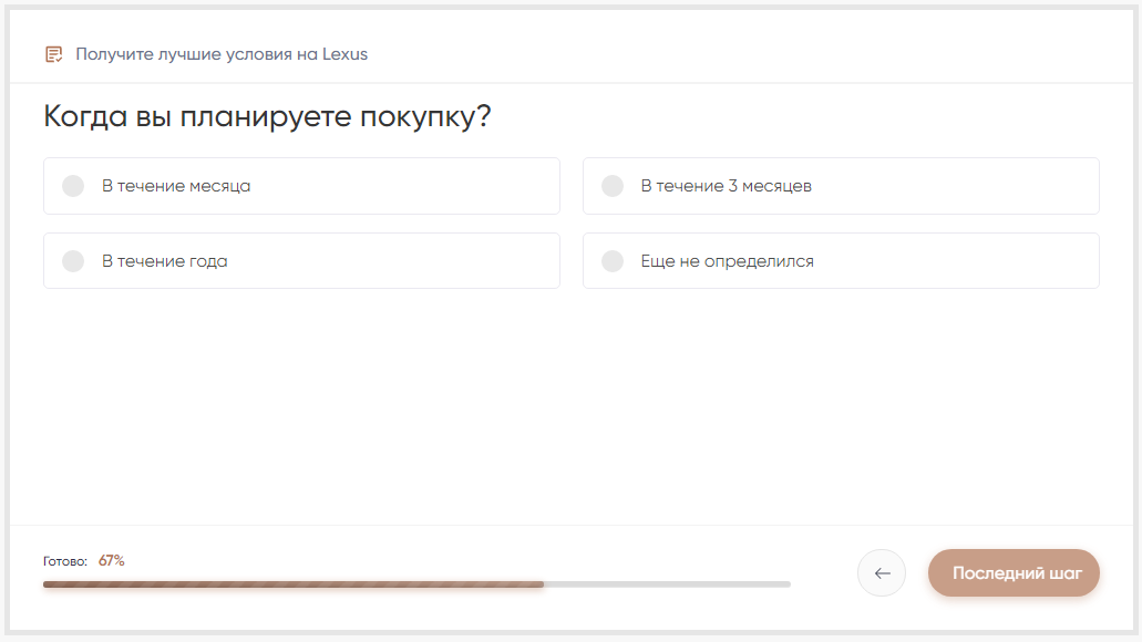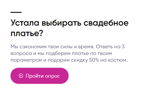 Квиз — это сайт-опросник. Как правило, он имеет конверсию выше лендинга, а на его создание достаточно потратить полчаса.