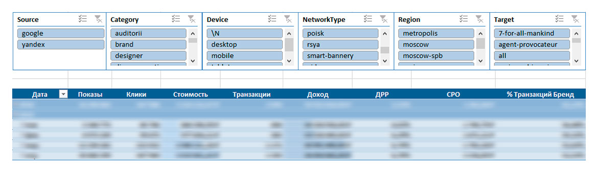 по брендам одежды. В марте мы снизили ДРР на 12% (по сравнению с февралем) за счет