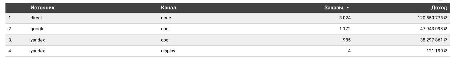 3. К интерпретации данных нужно подходить аккуратно. Статистика показывает лишь то, что пользователь заходил на сайт перед покупкой в выбранный интервал времени. Это не означает, что конкретный источник трафика подтолкнул его совершить покупку. Что именно сподвигло пользователя на целевое действие, можно узнать только забравшись в его голову.